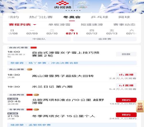 央视频供给冬奥赛事的直播、回放/图片来历:央视频