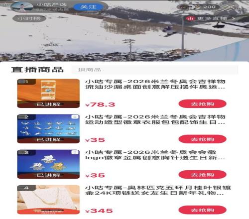 针对部分热门项目,渠道还设置了免广告的带货直播间,主播出售冬奥周边产品,背面大屏实时播映竞赛画面。针对单个热门项目,该渠道设置了免广告看竞赛的带货直播间,主播介绍并出售冬奥周边产品,背面的大屏幕上则为选手的实时竞赛画面。